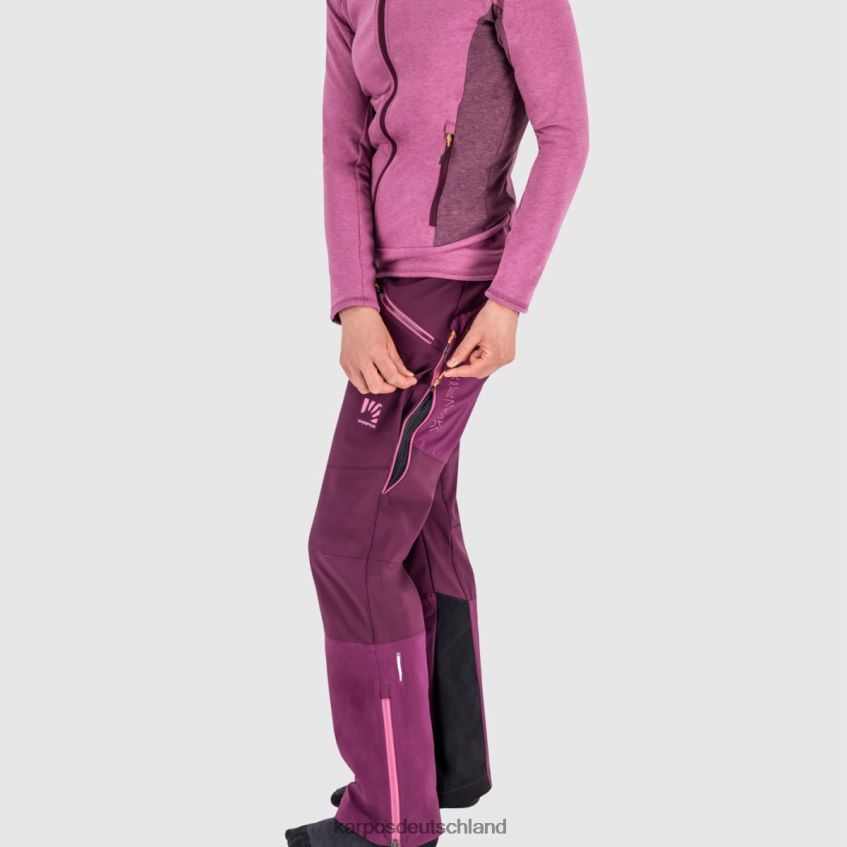 Konzept Sonne, Wind, wechselhaftes Wetter, Schnee. Wenn Sie im Winter längere (auch mehrtägige) Ausflüge planen, müssen Sie ein vielseitiges Kleidungsstück dabei haben, das sich allen Bedingungen anpasst. Aus diesem Grund haben wir unsere Marmolada-Hose entwickelt, ein zuverlässiges Kleidungsstück für jedes große Skiabenteuer, das mit der Marmolada-Jacke kombiniert werden kann. Diese Hose besteht aus einer Hybridkonstruktion und vereint mehrere Eigenschaften in einem einzigen Kleidungsstück und bietet so Schutz, Atmungsaktivität und Wärme. Einsätze aus wasserdichtem Stoff am oberen Rücken, an den Vordertaschen und an der Unterseite des Beins sorgen für eine Wassersäule von 20.000 mm und eine Atmungsaktivität von 41.000 g/m2/24h. Die Atmungsaktivität wird durch die seitlichen Doppelschieberreißverschlüsse weiter verbessert. Das Ripstop-Gewebe mit Fleece-Innenseite und DWR-Behandlung außen sorgt für Isolierung gegen den stärksten Wind. Die Hose verfügt außerdem über Taschen für den Einsatz eines Klettergurts, eine Tasche für ein LVS-Gerät am Oberschenkel und einen Einsatz am BeinUnterseite des Beins zum Schutz vor scharfen Skikanten.